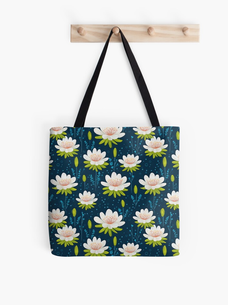 The Dragon Fruit Blossom or Dragon Fruit (Selenicereus undatus) is one of the plant kingdom’s most spectacular wonders, known for its unique nocturnal blooming. In Conciencia.eco, we’ve transformed its ephemeral elegance into an exotic botanical pattern that highlights its large white flowers and lime-green leaves against a deep blue background. This flower-illustrated tote bag is a design piece that captures a mysterious, sophisticated atmosphere, ideal for those seeking an accessory that stands out for its technical originality and its connection to the most astonishing and enigmatic tropical flora.