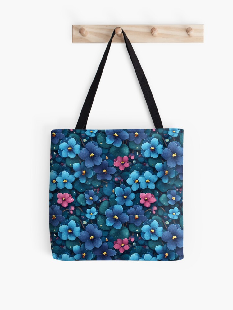 Sustituye el plástico con elegancia. Bolsa de tela con patrón de Violetas Africanas, diseñada para un estilo de vida sostenible y libre de residuos.