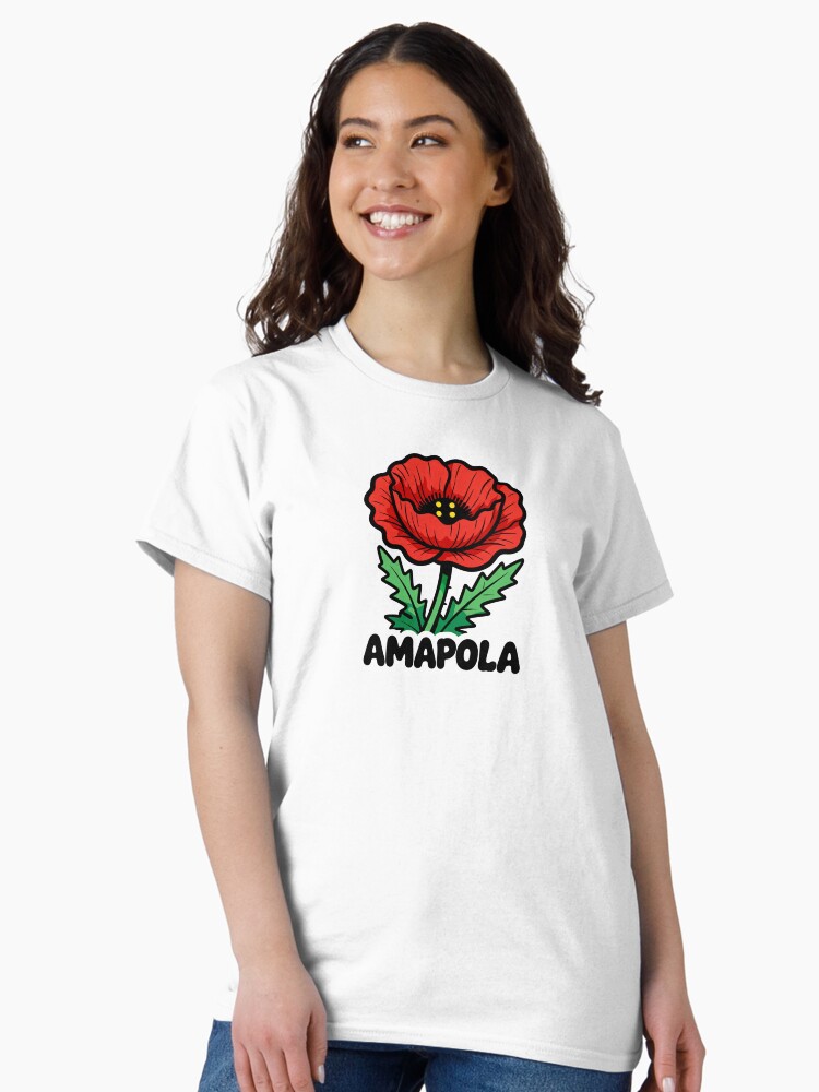 Viste el rojo intenso de los campos silvestres. Camiseta de Amapola con diseño retro de los 80 que celebra la libertad y la belleza indomable.