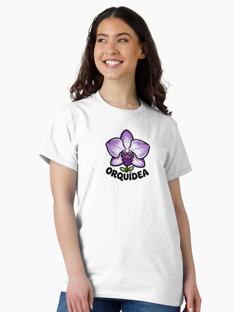 Viste el símbolo de la sofisticación exótica. Camiseta de Orquídea con diseño retro de los 80 que celebra la diversidad y la belleza refinada del trópico.