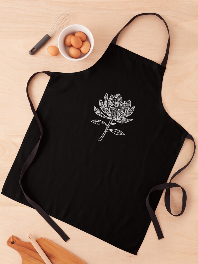 Elegancia atemporal para tu hogar. Delantal con ilustración de magnolia en puntillismo, un diseño sofisticado para entusiastas de la botánica.