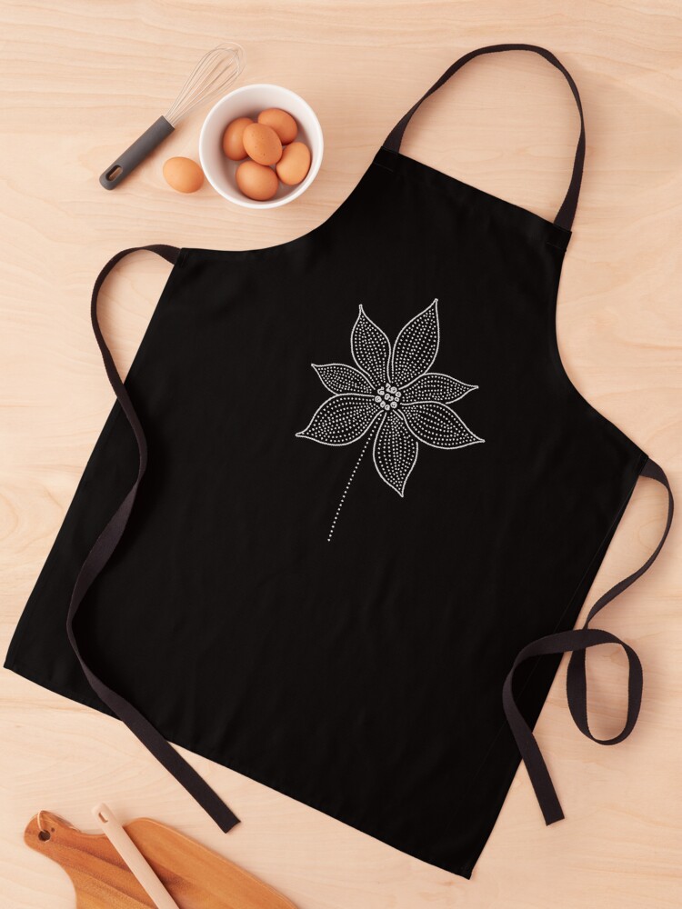 Celebra la tradición con elegancia. Delantal de Nochebuena (Flor de Pascua) en técnica de puntillismo, ideal para la cocina festiva y el jardín.