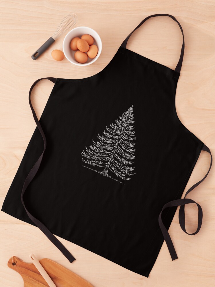 Siente la paz del bosque sagrado en tu hogar. Delantal de Abeto Oyamel en técnica de puntillismo, ideal para amantes de la montaña y la cocina consciente.