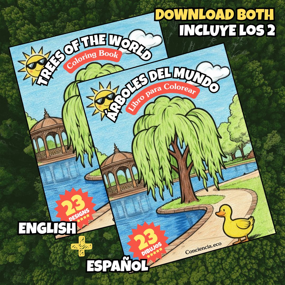 El Libro para Colorear Árboles del Mundo es mucho más que una actividad artística; es una herramienta de exploración diseñada para despertar la curiosidad y el respeto por la naturaleza en los más pequeños. En Conciencia.eco, hemos creado una experiencia bilingüe completa donde cada trazo de color es una oportunidad de aprendizaje. Este libro digital invita a los niños y sus familias a descubrir la majestuosidad de los árboles más emblemáticos de nuestro planeta, desde las selvas tropicales hasta los desiertos más remotos, combinando la relajación del arte con el rigor de la educación ambiental básica. Es el recurso perfecto para tardes creativas en casa, proyectos escolares o como parte de un programa de educación en el hogar que busca conectar el conocimiento científico con la expresión creativa.