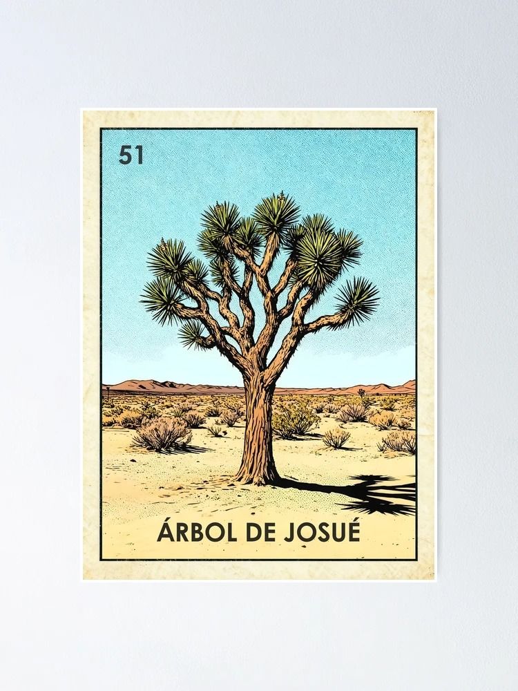 El espíritu del desierto en una lámina. El Árbol de Josué (Joshua Tree) interpretado con el colorido y la tradición de la Lotería Mexicana.