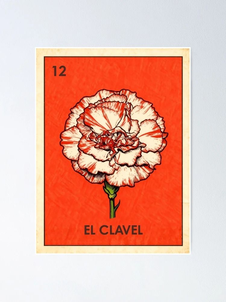 Decorar con la imagen de un clavel es invocar la energía de la alegría compartida y la admiración. En el lenguaje de las flores, el clavel rojo simboliza el amor profundo, mientras que los tonos variados representan la diversidad de sentimientos. Al elegir esta lámina para tu espacio, estás incorporando un símbolo de orgullo y arraigo cultural. La ilustración de este póster del clavel resalta la textura única de sus bordes dentados, presentándolos en un marco de lotería tradicional que aporta un aire de nostalgia y calidez festiva. Es la pieza ideal para quienes buscan una decoración con carácter, que hable de la tierra y de las costumbres que nos unen.