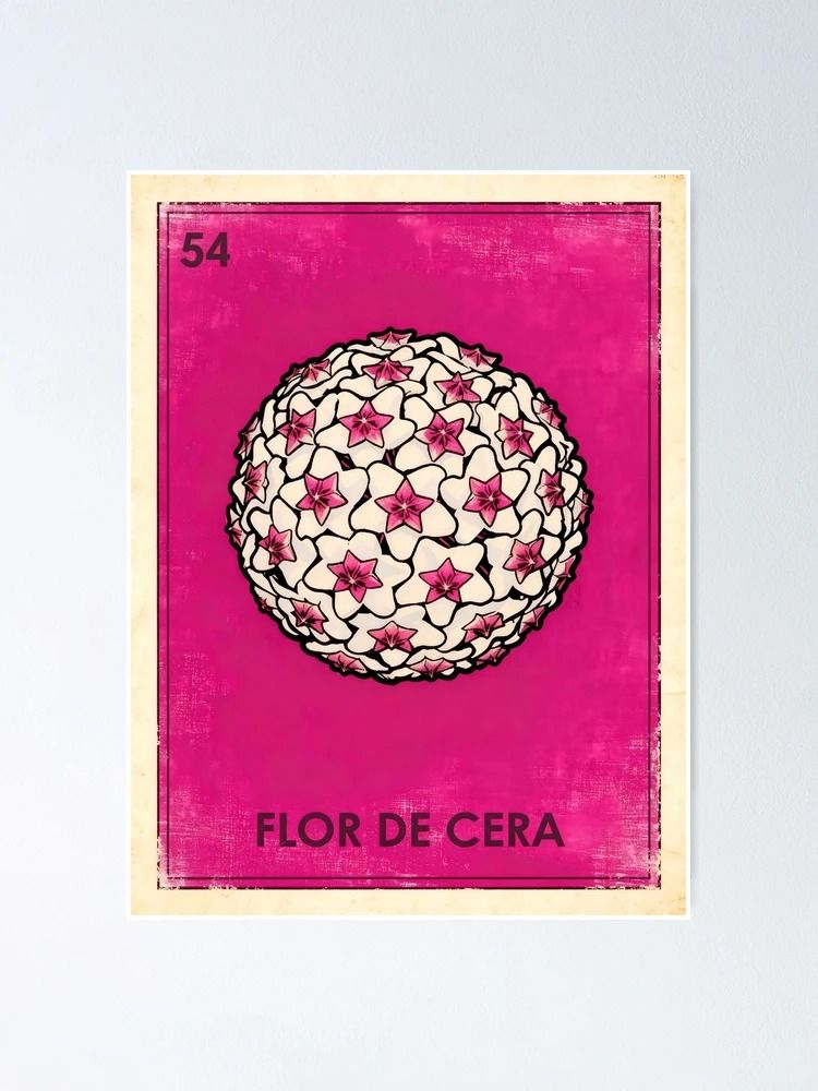 La Flor de Cera (Hoya carnosa), con sus umbelas perfectas de flores que parecen esculpidas en porcelana, es una de las plantas trepadoras más fascinantes del mundo botánico. En Conciencia.eco, hemos capturado esa textura cerosa y su geometría estrellada para presentarla bajo la estética de la lotería tradicional. Este póster de la flor de cera hoya con diseño de lotería es una pieza que irradia calma y perfección, transformando una especie exótica en un icono del diseño latino que celebra la complejidad de la vida vegetal.