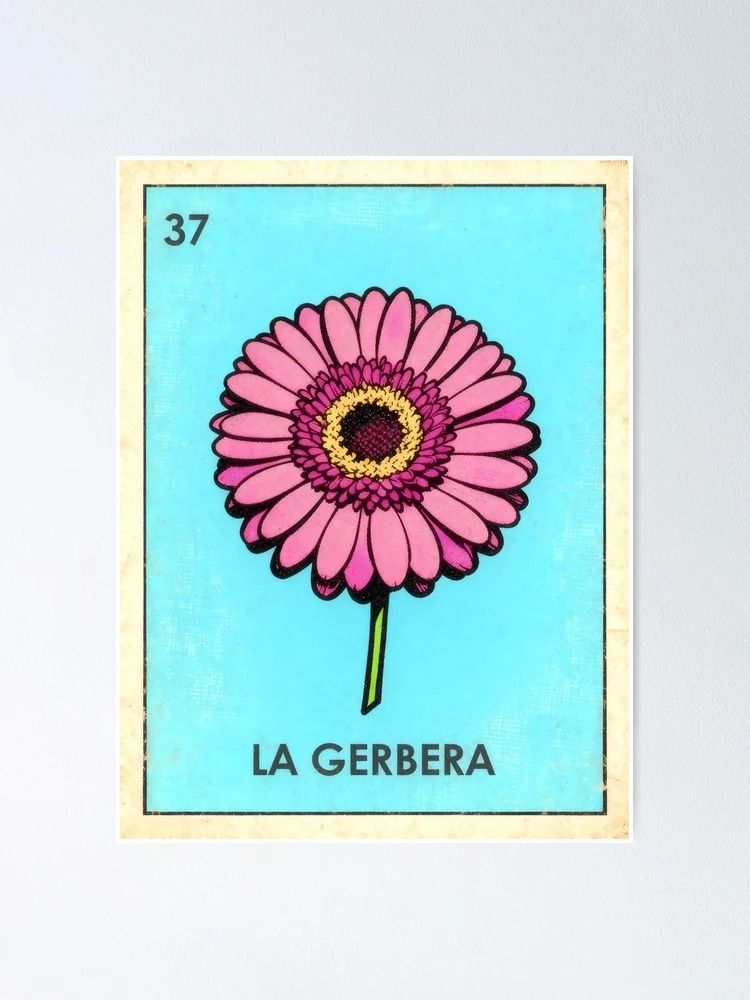 Lo que hace especial a esta obra es su capacidad para elevar una flor clásica a la categoría de icono gráfico contemporáneo. Este póster de flor gerbera rosa inspirado en la lotería rompe con los esquemas de la ilustración botánica convencional para ofrecer algo más cálido, decorativo y lleno de carácter regional. Su diseño permite que funcione de maravilla en ambientes modernos que busquen un toque de folklore refinado. La tipografía clásica y el borde definido del juego de la lotería mexicana añaden una narrativa visual que invita a celebrar la biodiversidad con un estilo inconfundible, convirtiendo una simple flor en un objeto de colección que respira historia y modernidad.