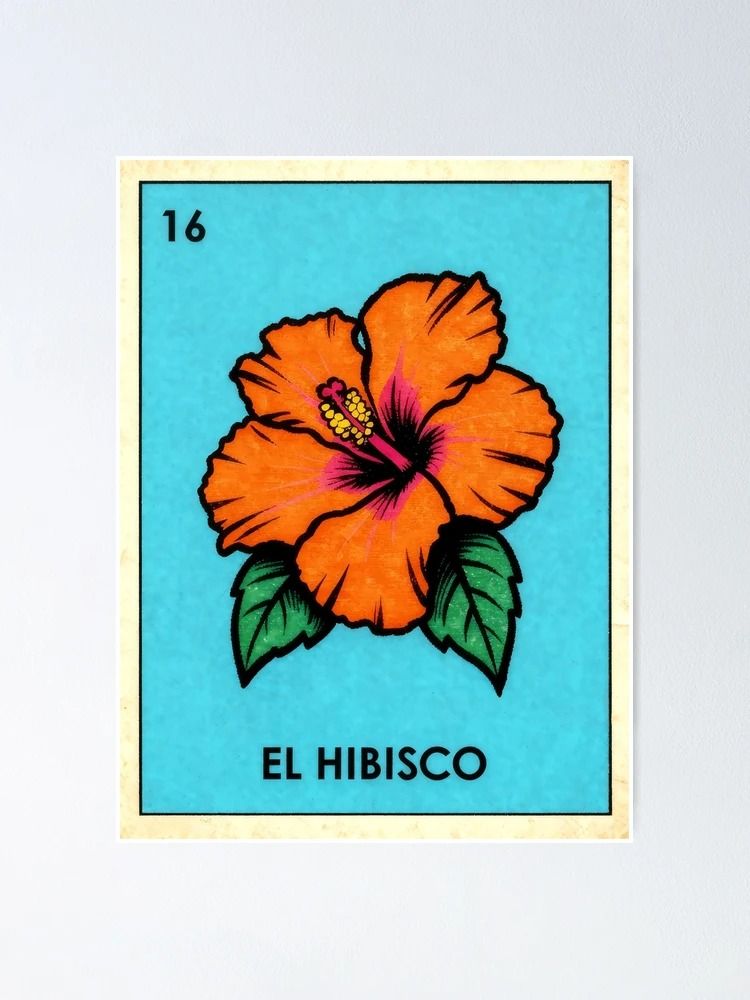 Exotismo tropical y belleza efímera. El Hibisco, símbolo de la elegancia sutil, interpretado con el colorido y la pasión de la Lotería Mexicana.